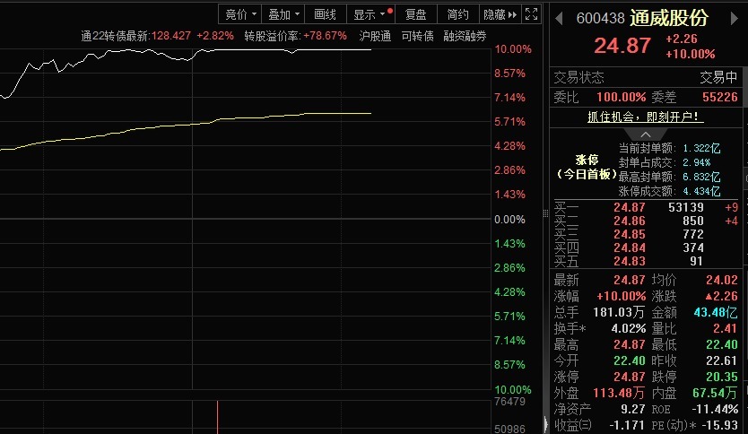 10月29日午后光伏板块集体大涨云沪深配资,其中通威股份(600438)股价更是实现涨停。