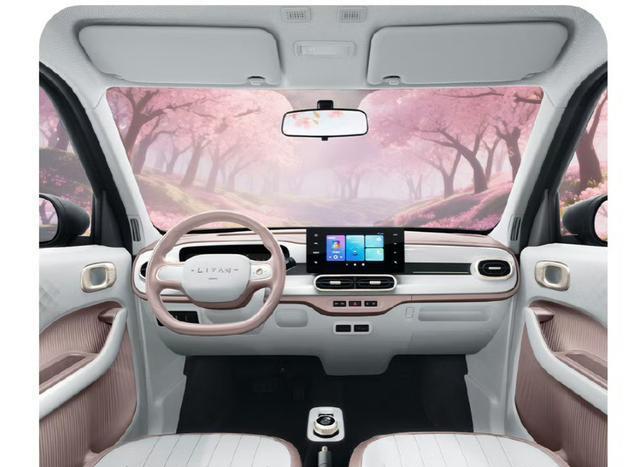 内饰部分,整体看来简洁且圆润。新车配备了中控屏和液晶仪表,颜色上提供樱花粉、城堡灰、森林绿内饰配色。